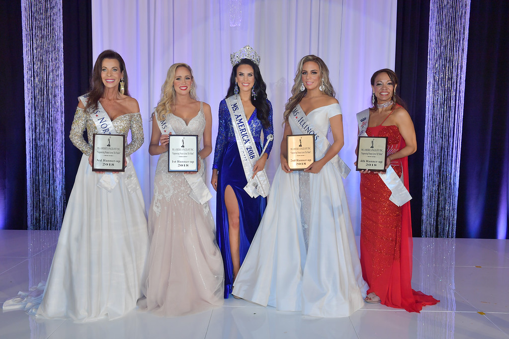 Ms. America® 2018 first runner-up is Sarah Blanton Ramsey, Ms. Texas; second runner-up is Sherrie Gearhart, Ms. Illinois; third runner-up is Dee Lane, Ms. North Florida; and fourth runner-up is Tina Abbantangelo, Ms. Nevada.